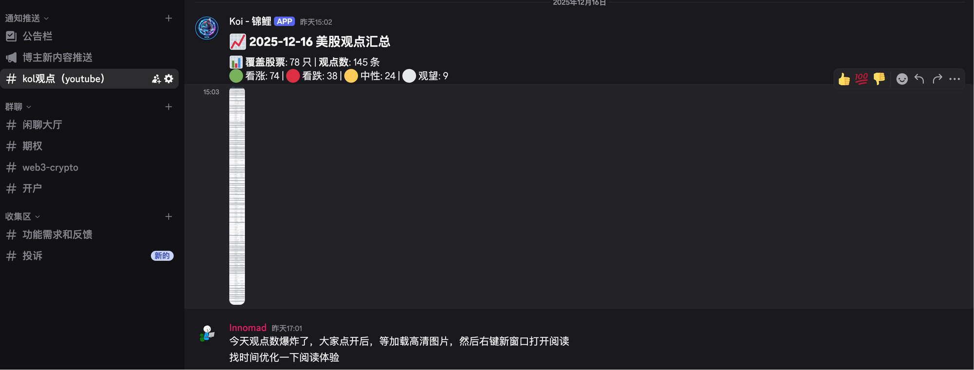 KOL 观点已经运行一个多月了,除了前两天磁盘爆满挂了之外,其他时间还算稳定。