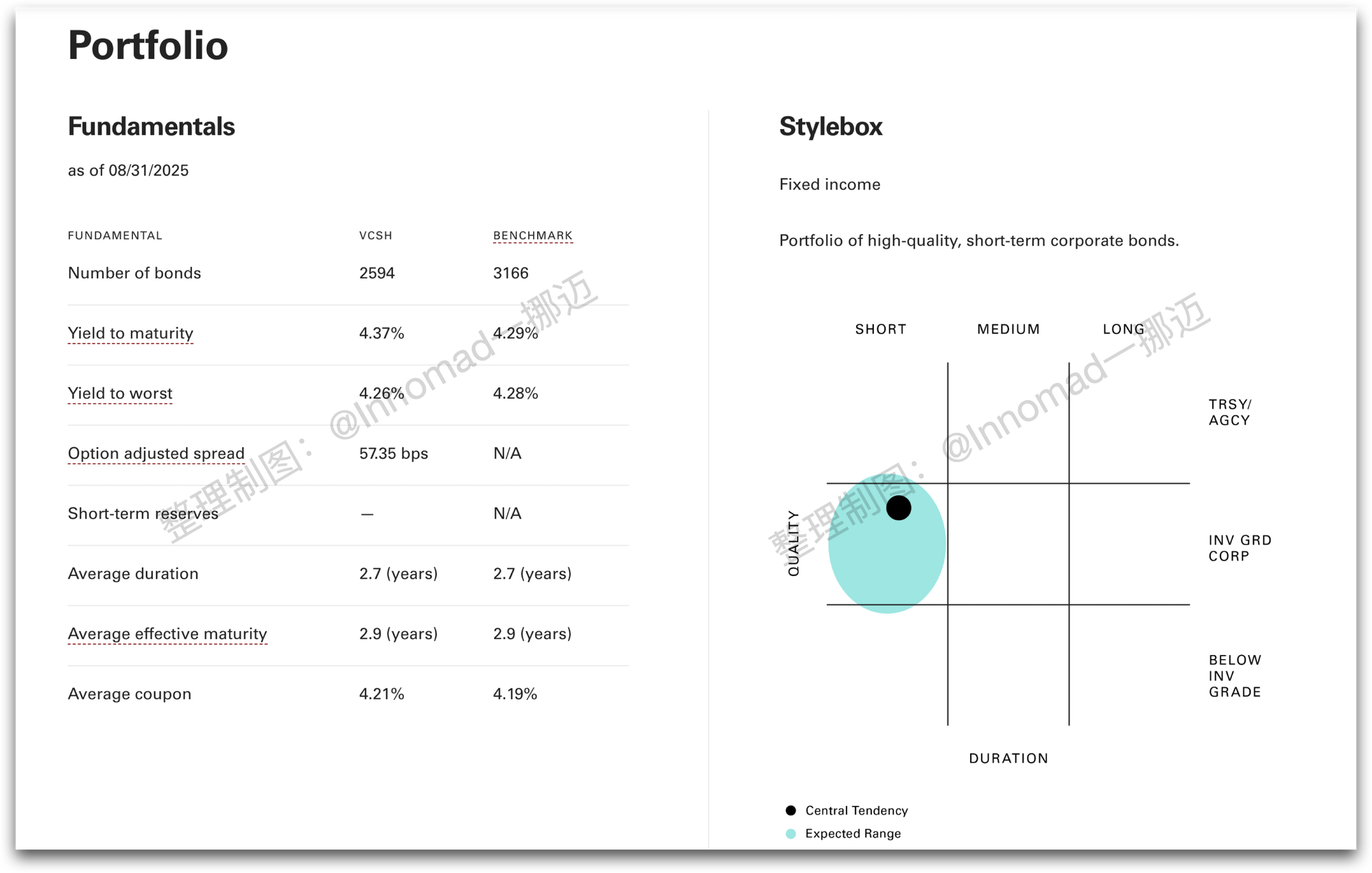 这种方式虽然会引入一些细微的追踪误差,但 VCSH 极低的费率也算是一种补偿了。