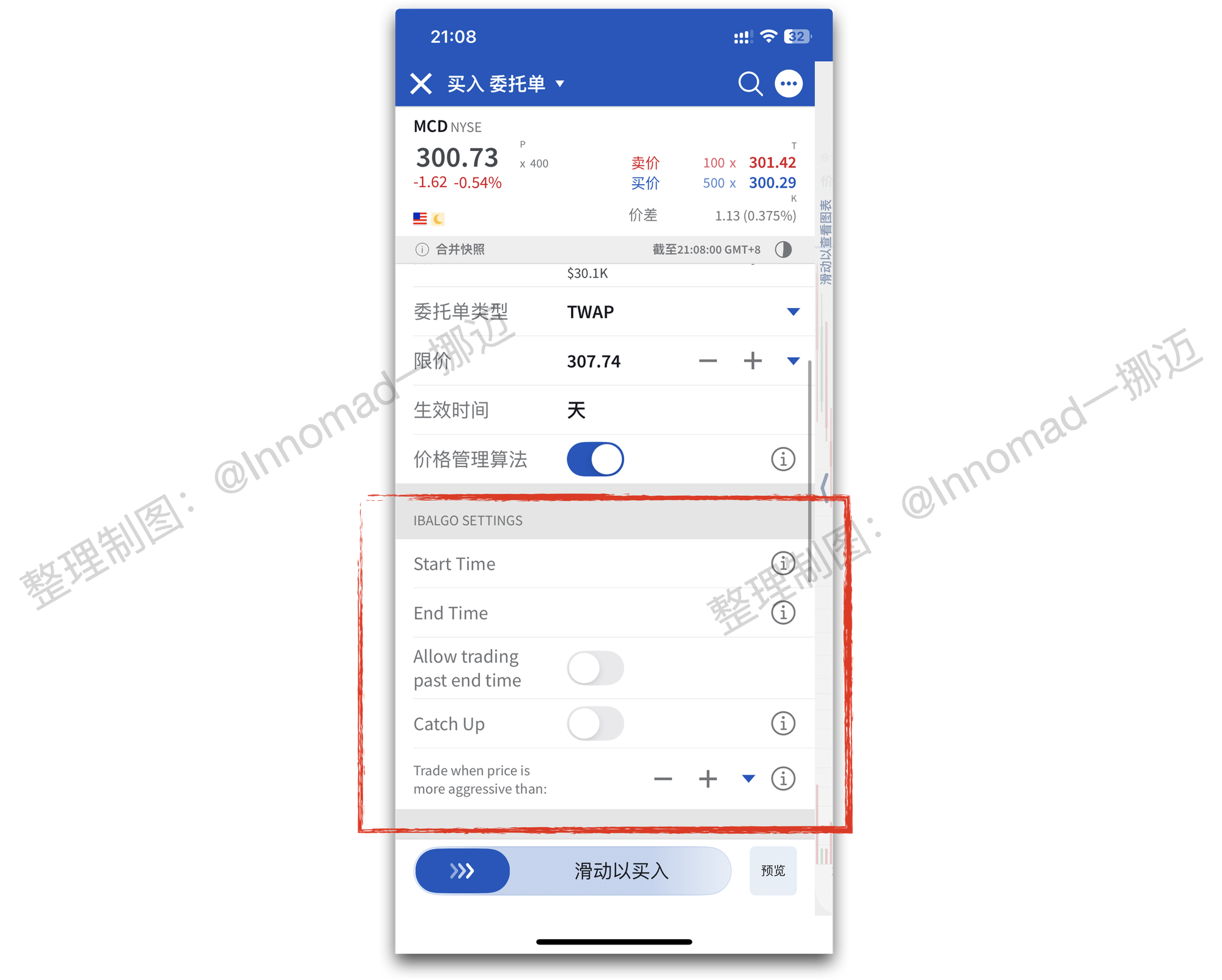 TWAP 只要记住,它就像一个「迷你定投」,你可以设置一个时间片段,然后算方就好像在定投一下给你买入股票。非常适合想要入场,但又想要一个还过得去的价格的时候使用。