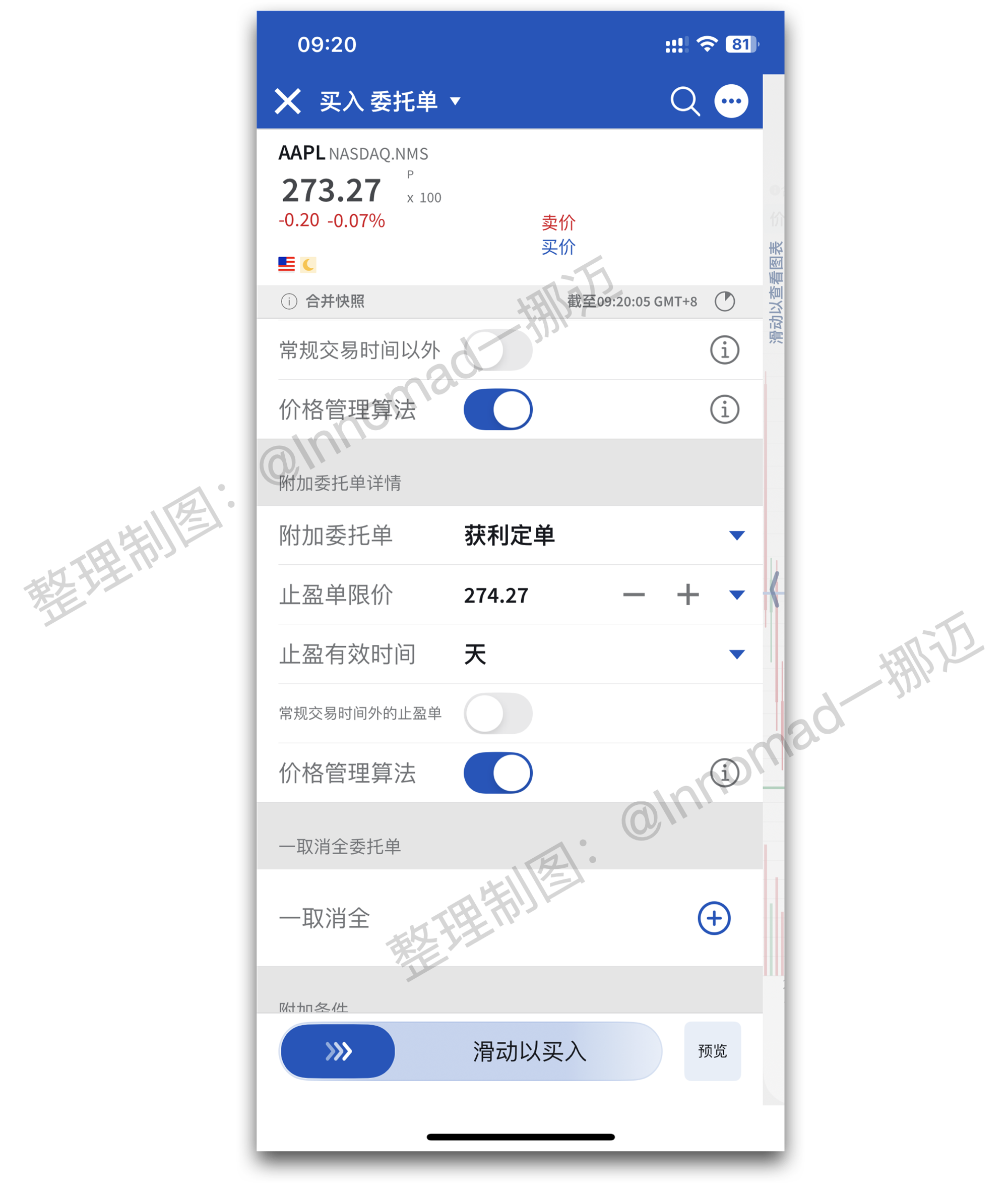即设置一个附加的限价单,当股价达到或优于你设定的获利价时触发。