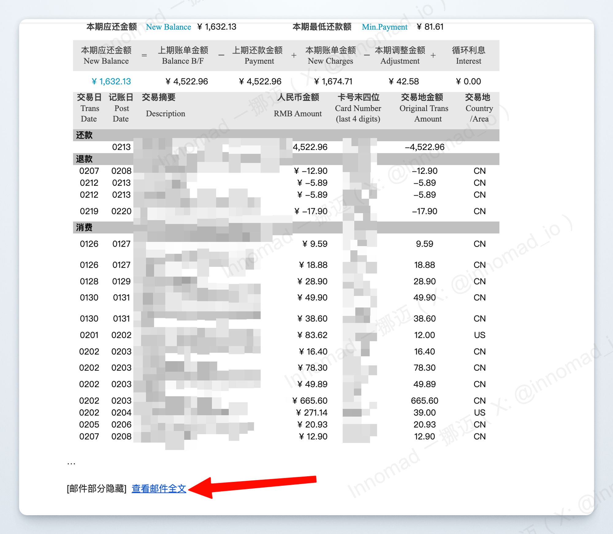 现在有的银行信用卡账单没有 PDF 文件了,而是直接往你邮箱发一封邮件,比如: