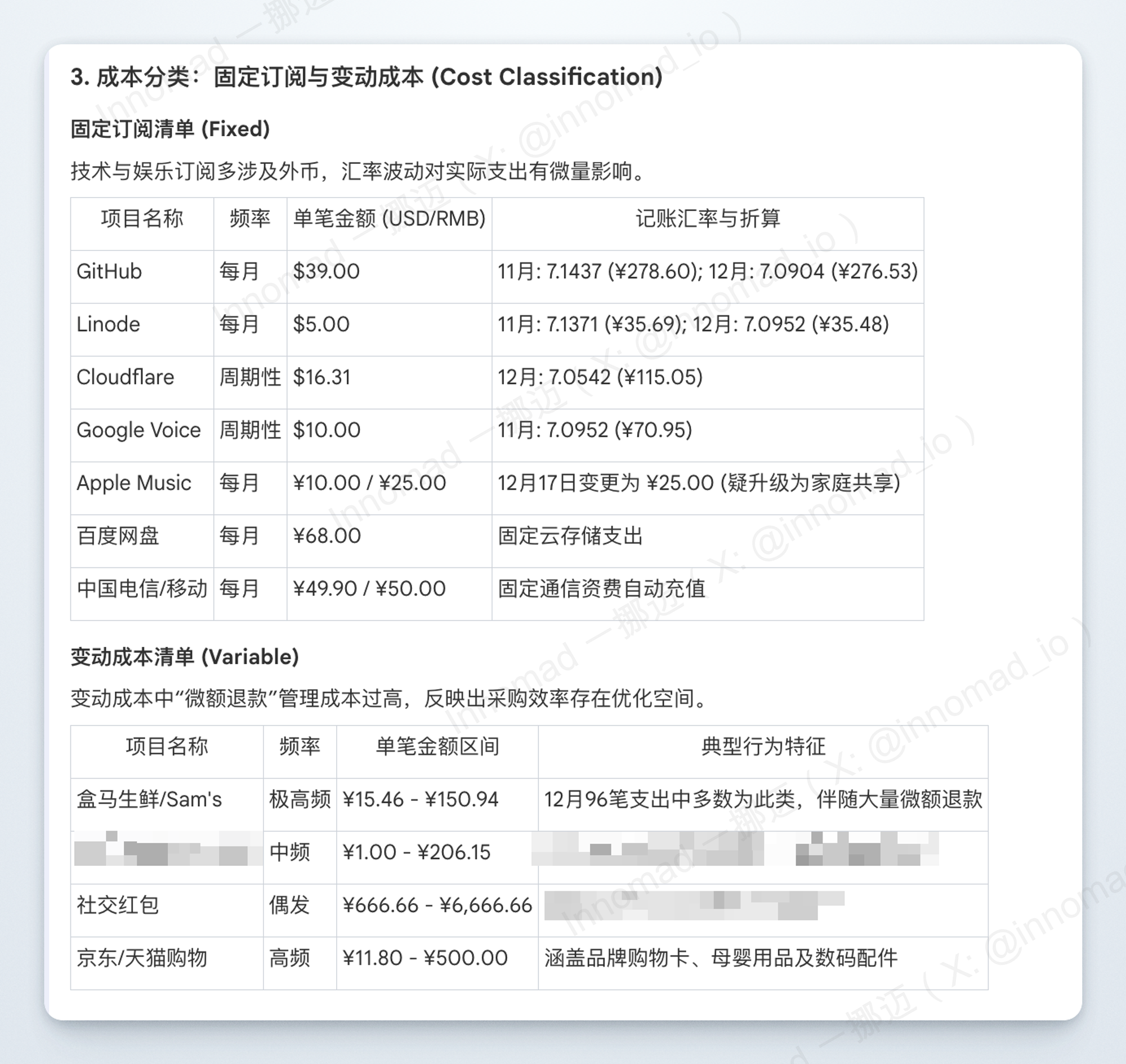 2. 固定成本 vs 变动成本:自动识别哪些是固定订阅或房租支出,哪些是随意的日常消费。